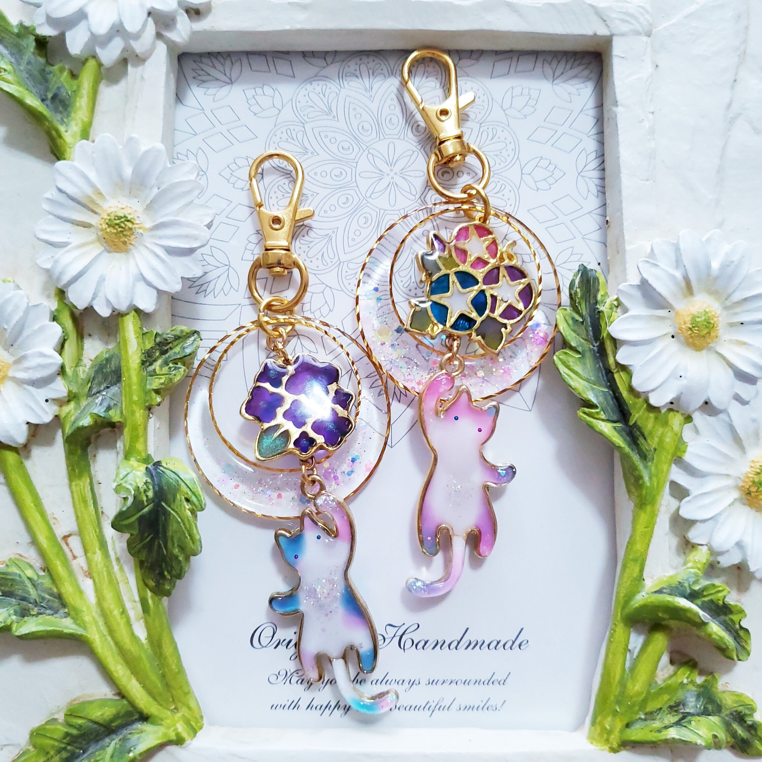 雨上がりにゃんこ ✦ 紫陽花 ✦ キーホルダー