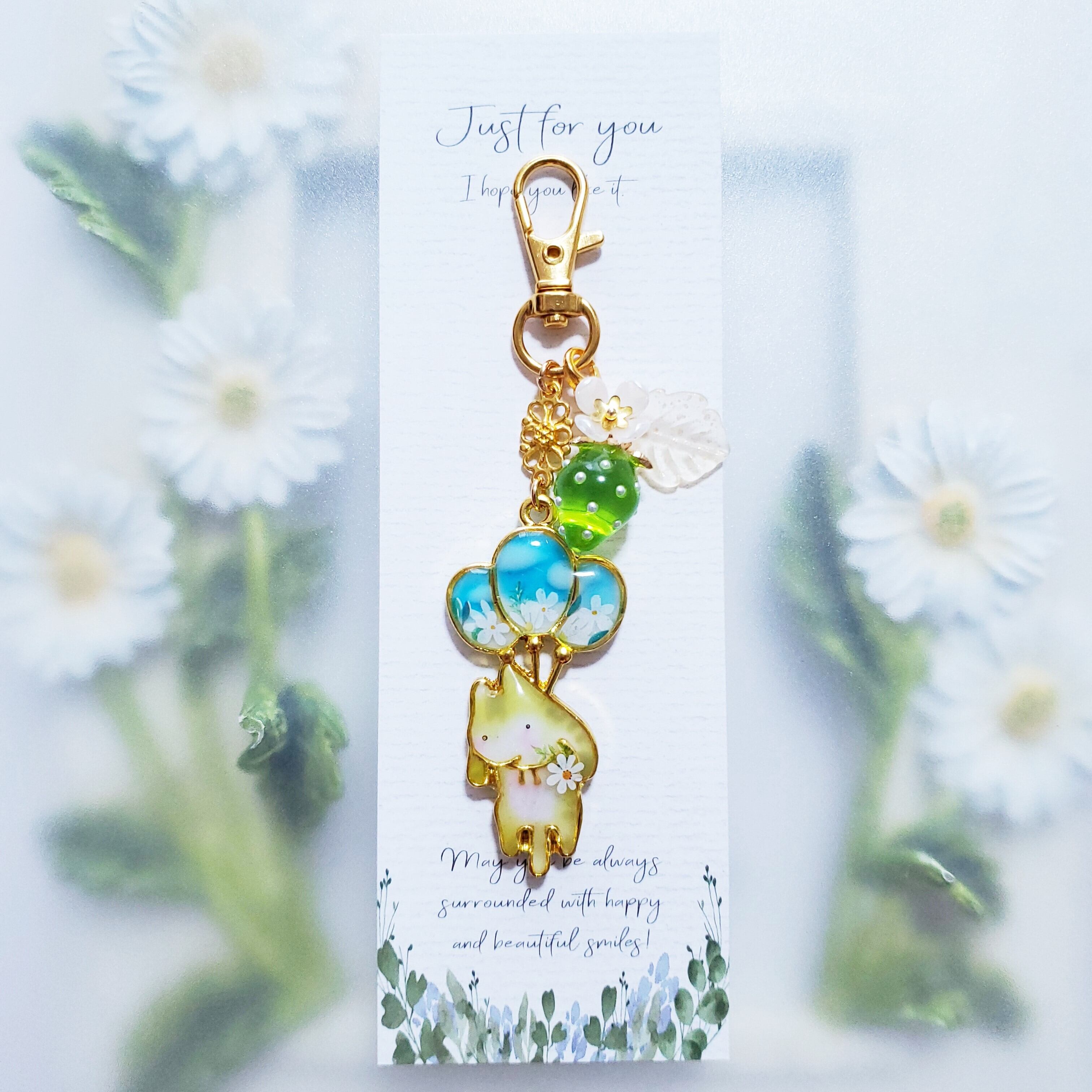 風船にゃんこ ✦ 旅するこねこ・海辺 ✦ キーホルダー