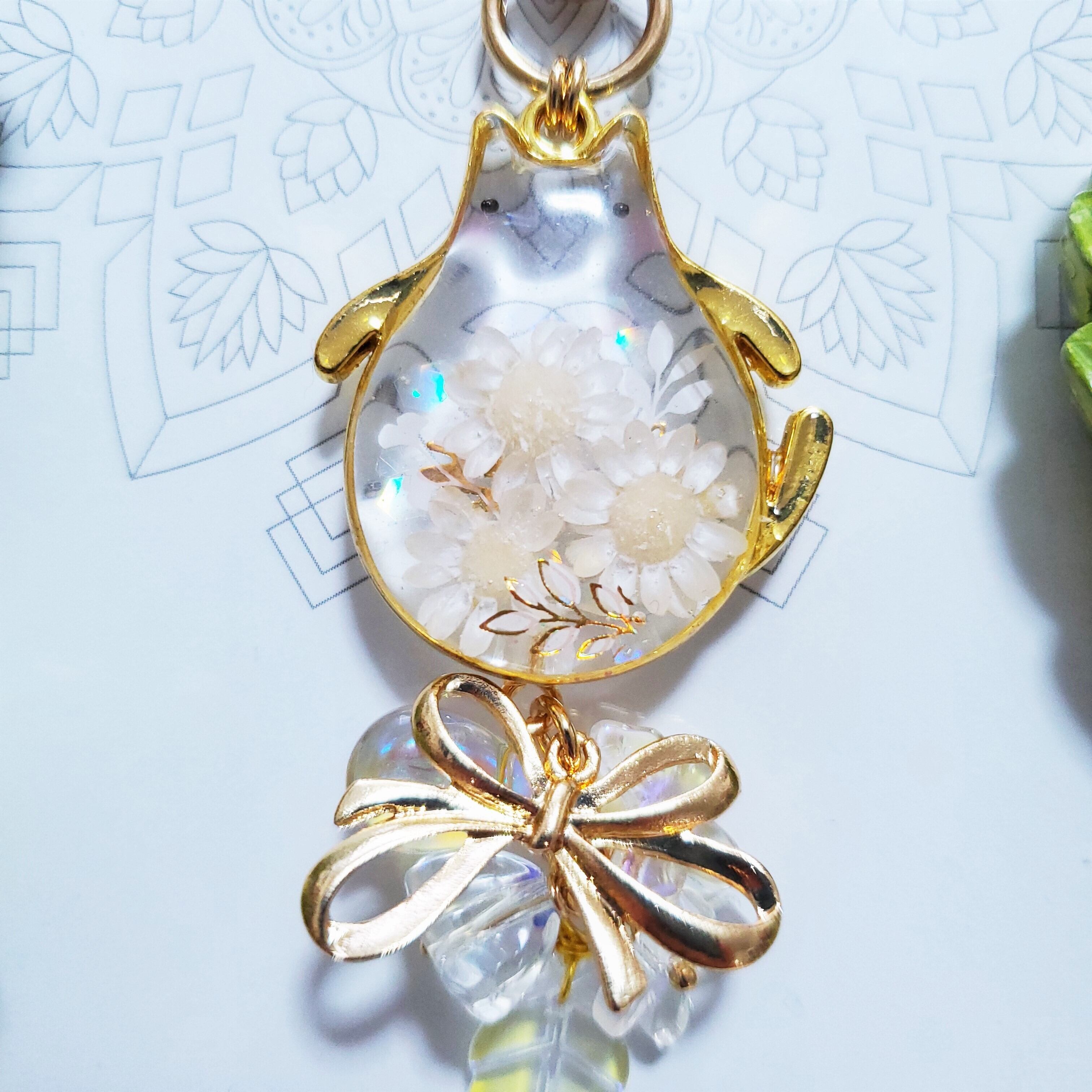 クリアカラーにホワイトフラワーを飾った涼やかなねこちゃんです。
