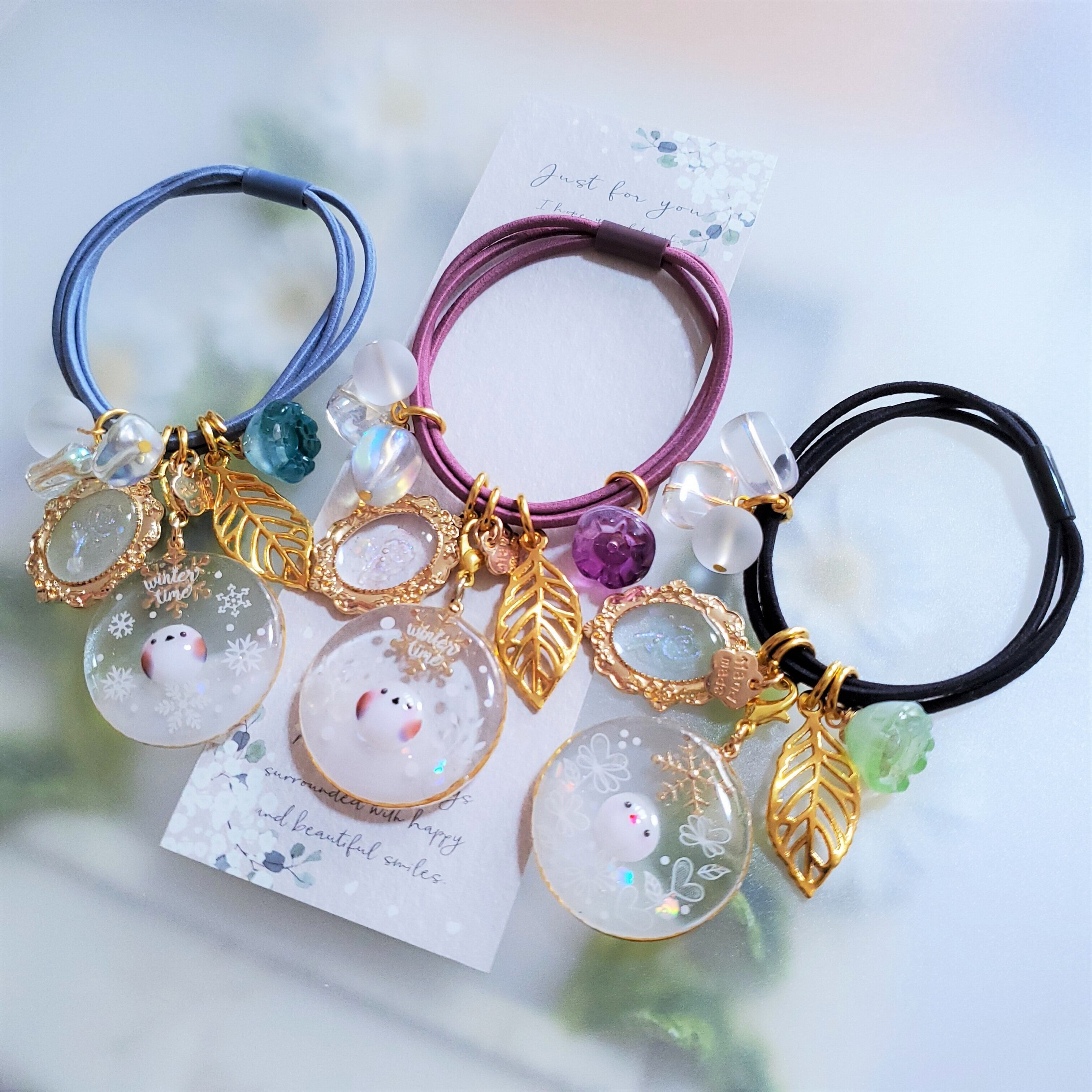 ヘアゴム着脱の際には チャームを掴んで引っ張らないようご注意ください。