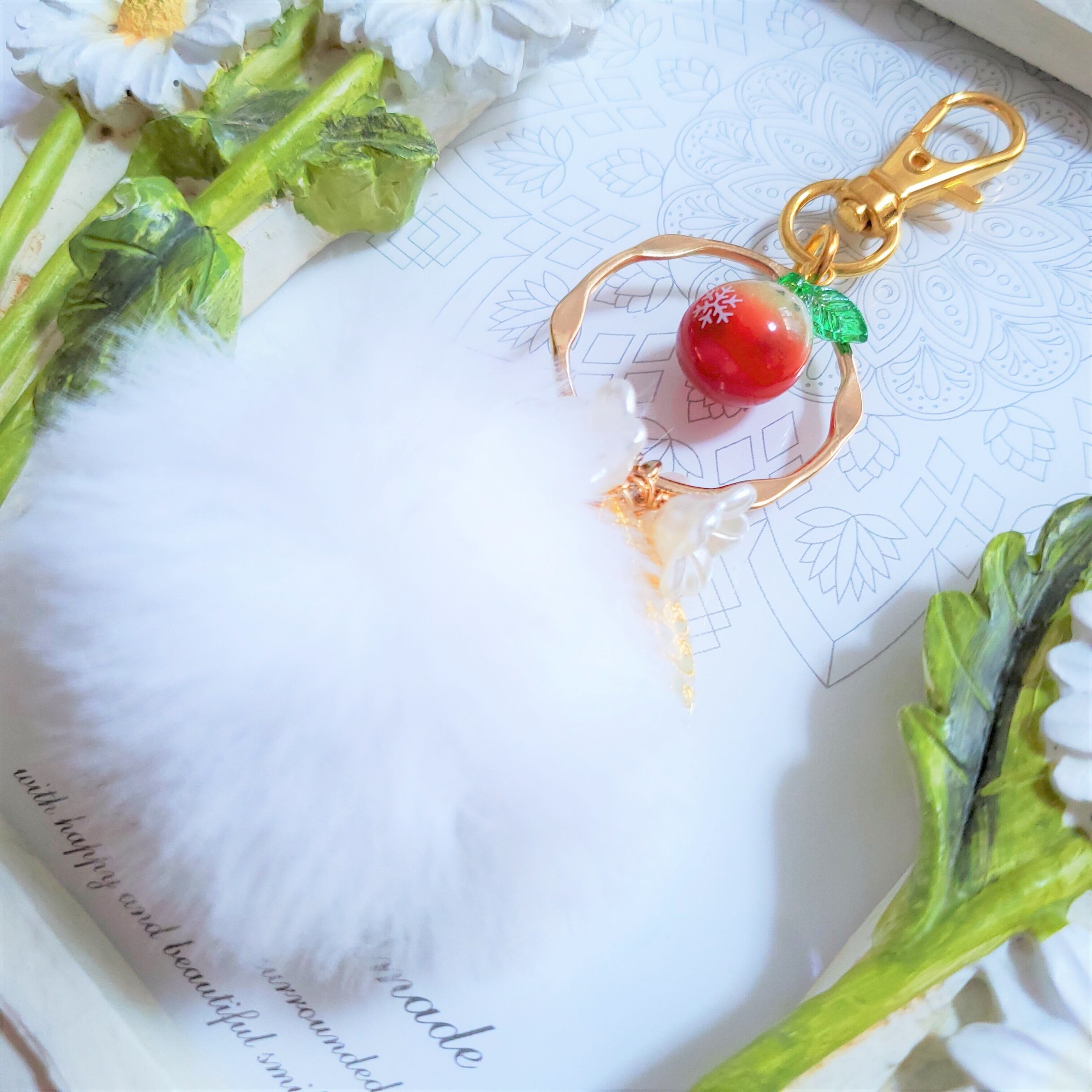 ふわふわシマエナガ ✦ りんごりんごシマエナガ ✦ キーホルダー