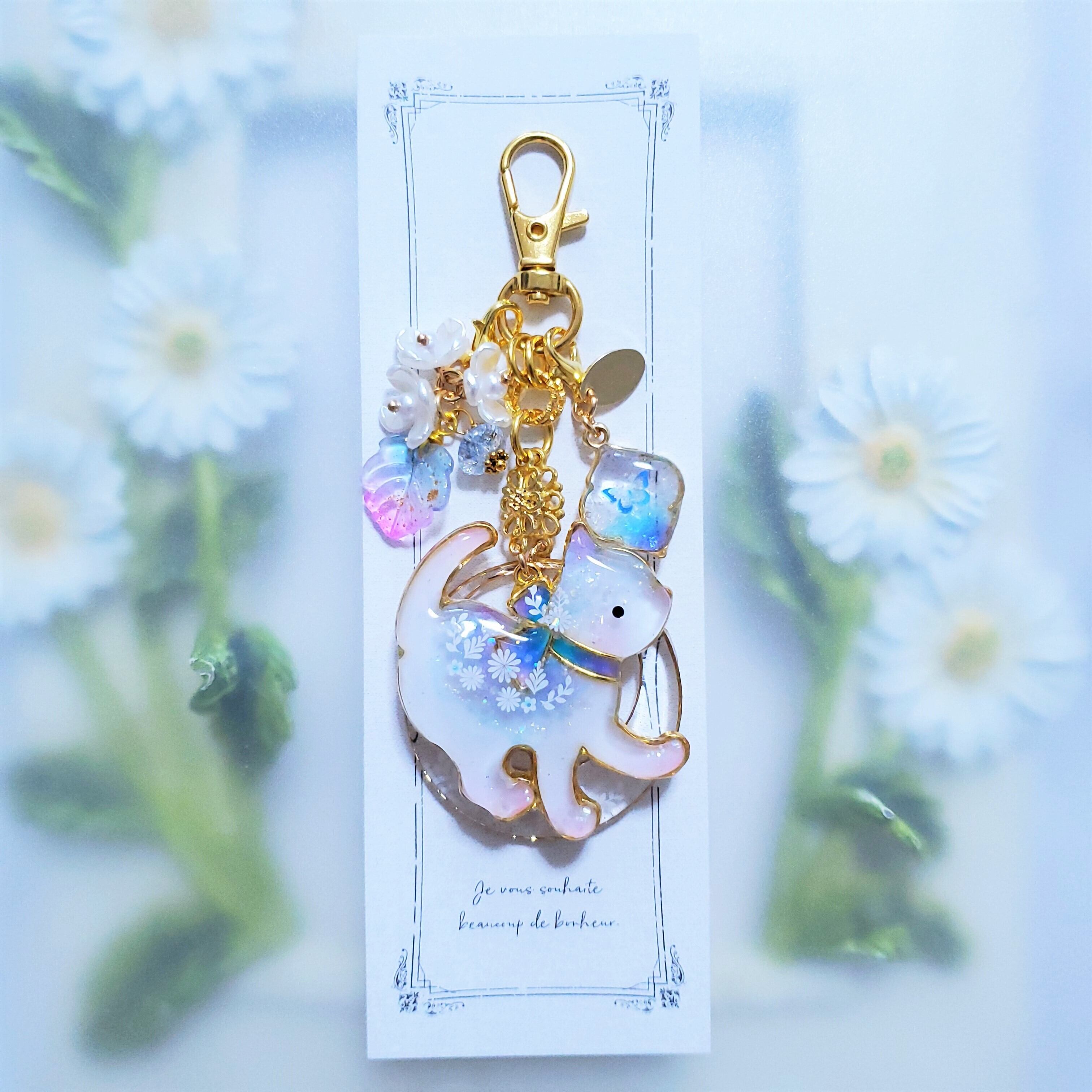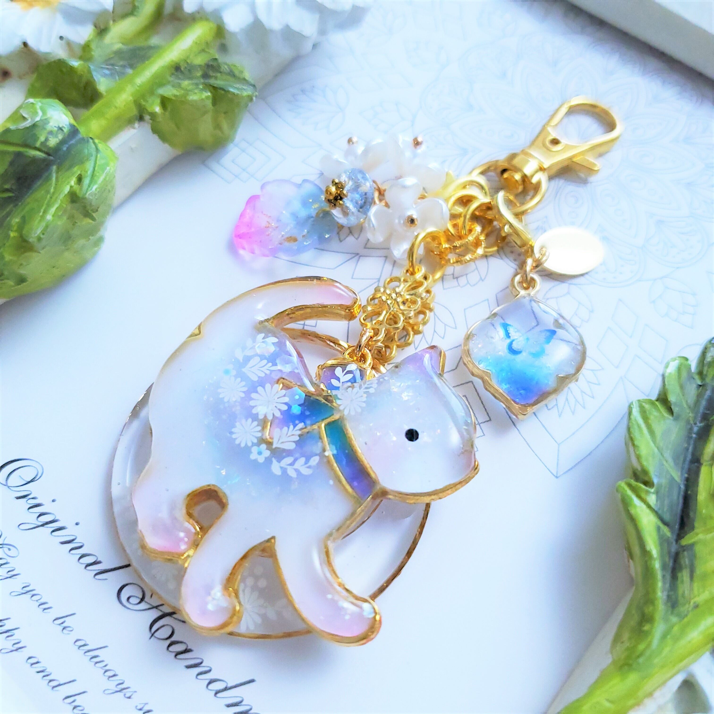 sold out ✦ お散歩子猫 ✦ ブルーボタニカル ✦ キーホルダー