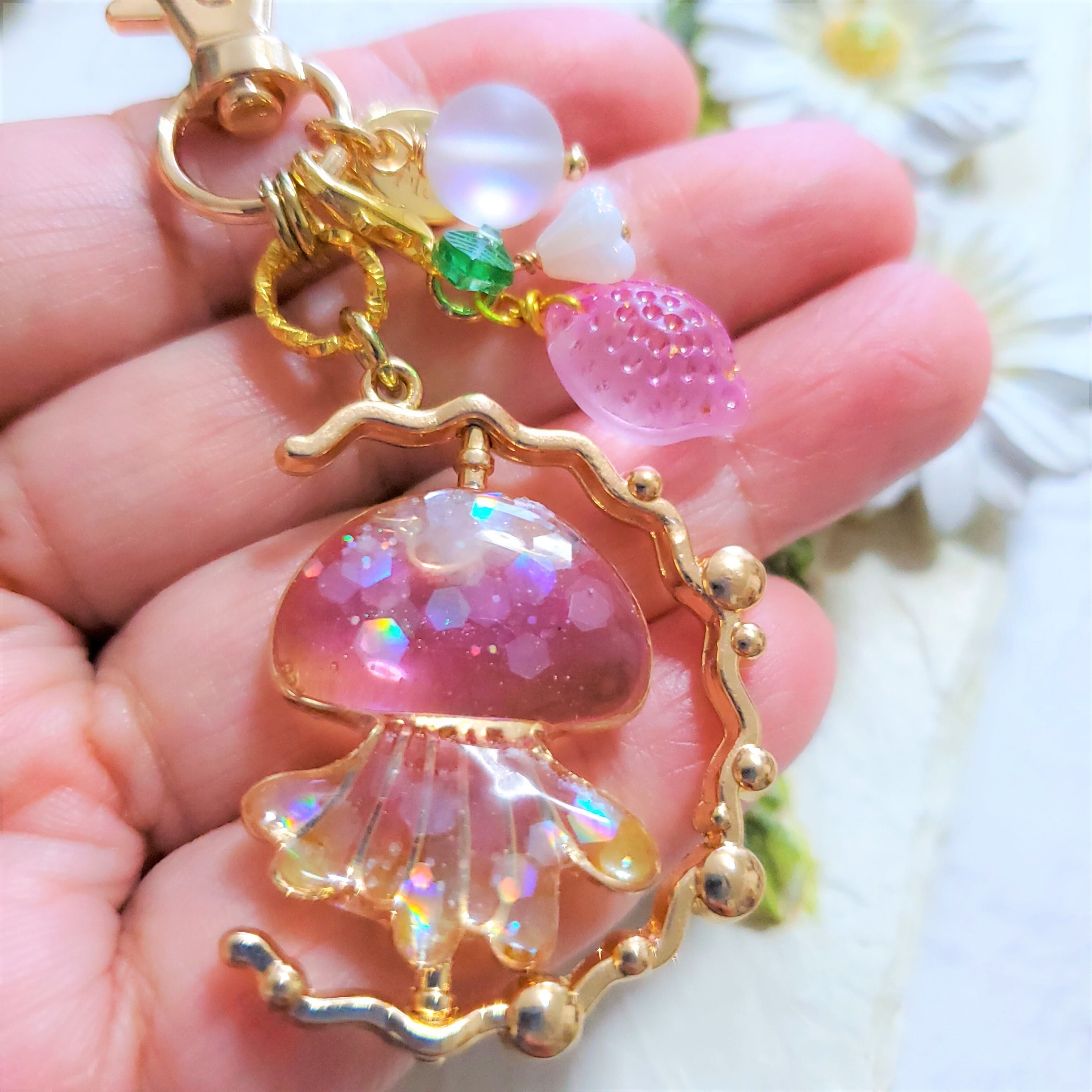 くるりんくらげ ✦ キラキラピンク ✦ キーホルダー