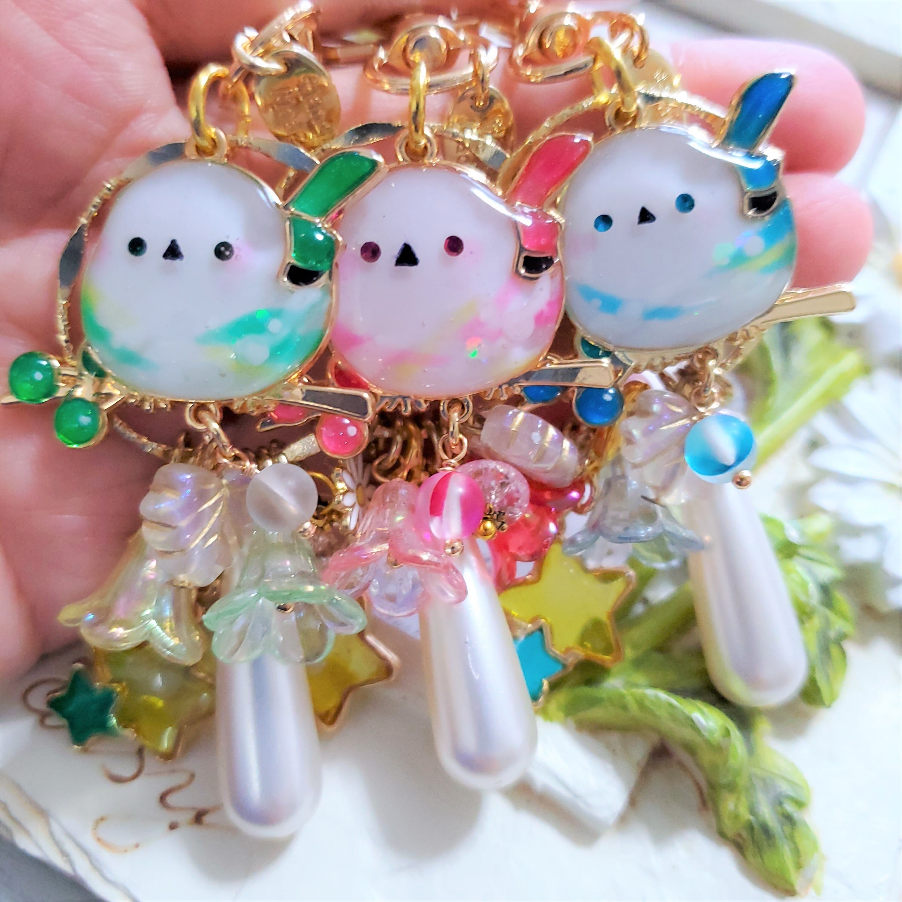 シマエナガちゃんに木の実と葉っぱのチャーム付き