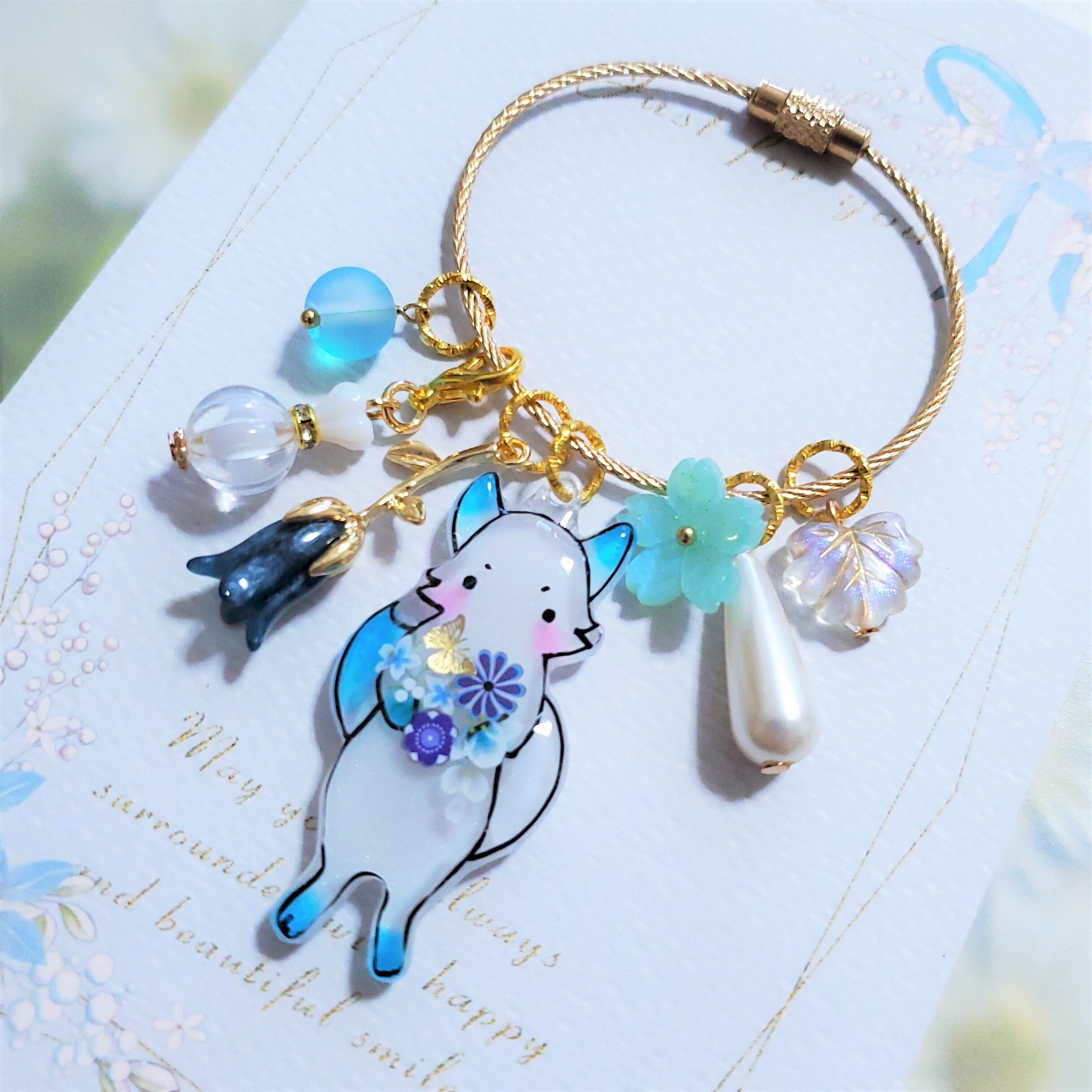 sold out ✦ すってんころりん狛狐 ✦ 紺碧(こんぺき)✦ ワイヤーキーリング