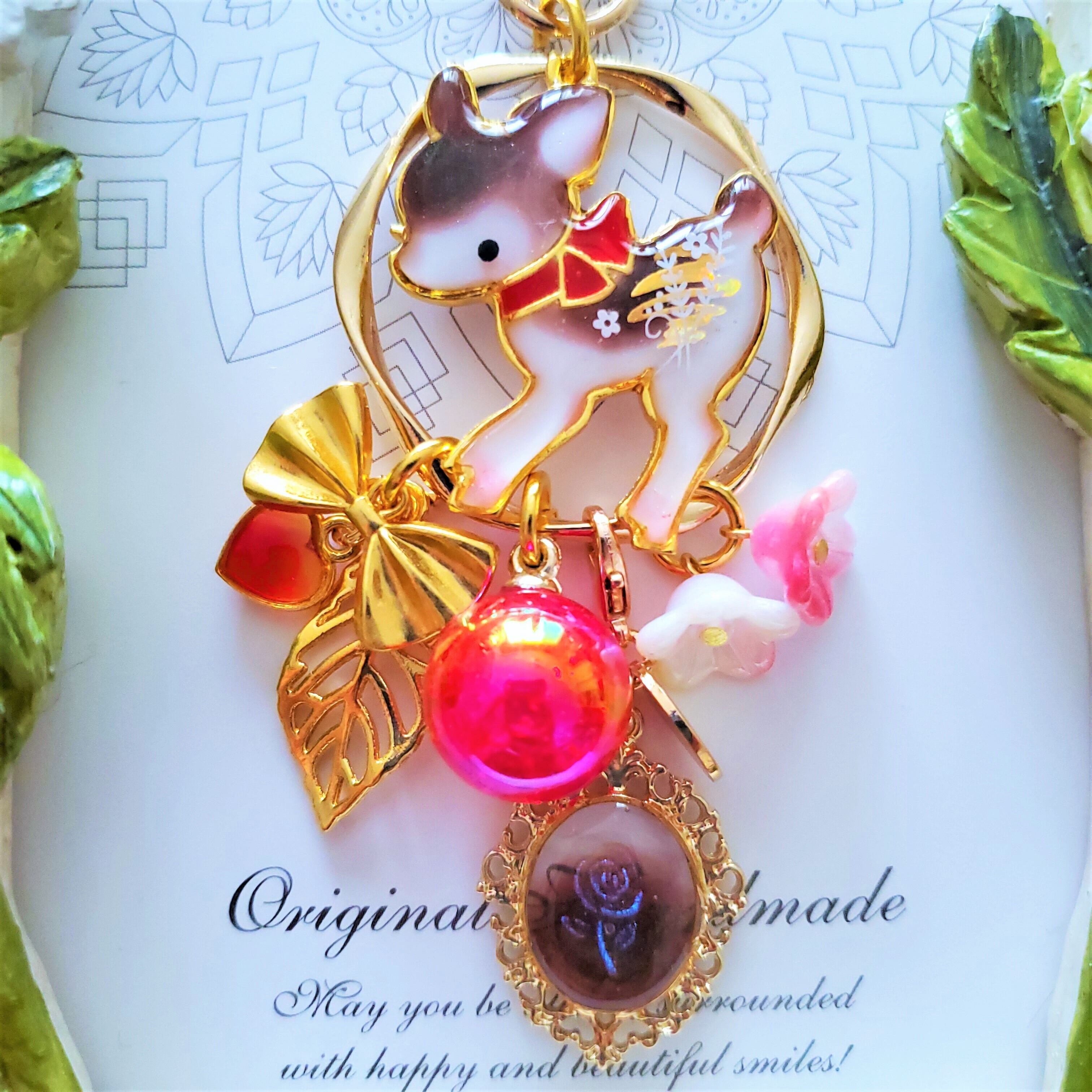 小鹿ちゃんカラーのチャームをたっぷり飾りました。
