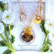 カラスビーズのカトラリーチャーム・オレンジの木の実チャーム・ブラウンのキラキラボトルチャーム付き。