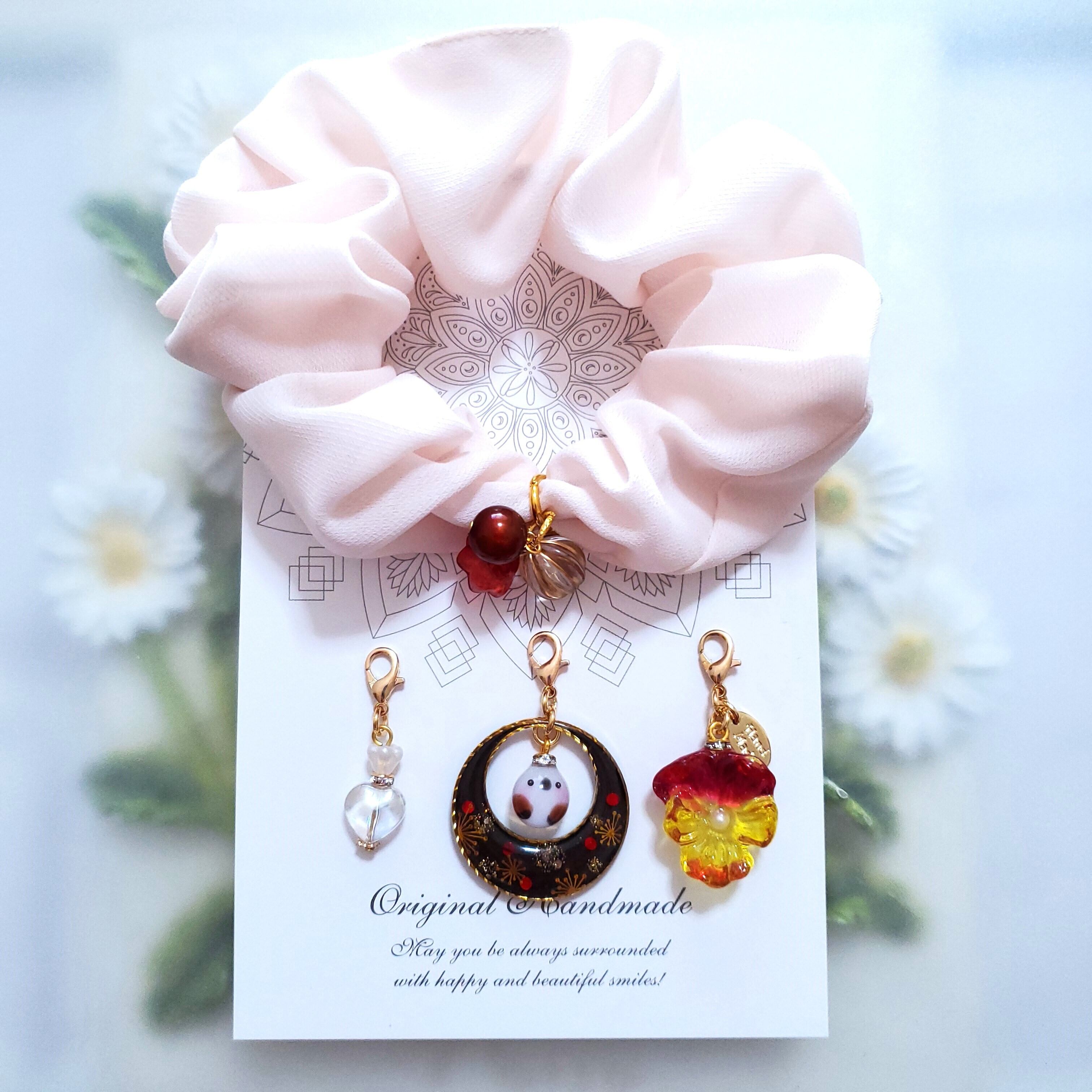 ※ガラスビーズはシュシュに固定です。