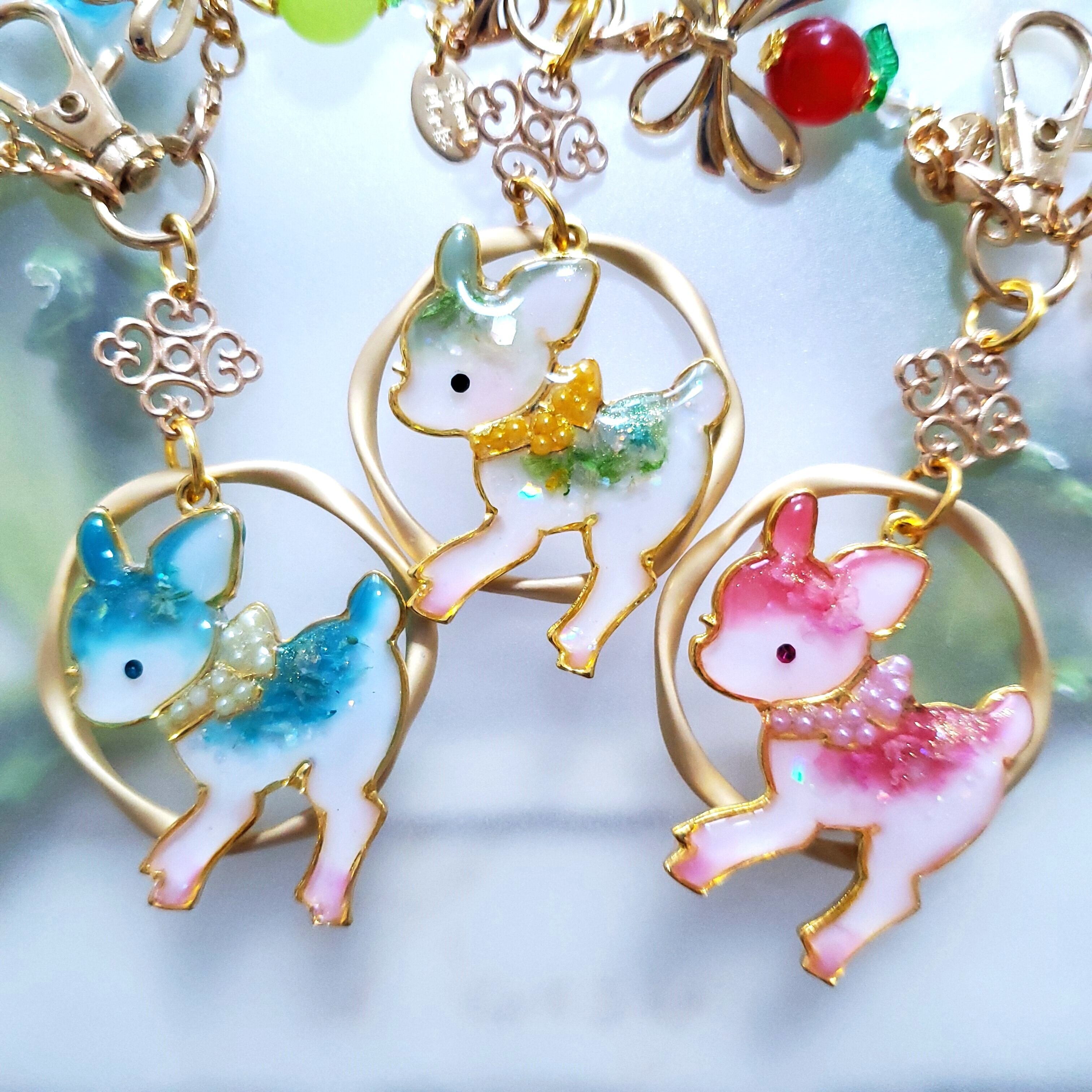sold out ✦ お散歩子鹿ちゃん ✦ ピンクフラワー ✦ キーホルダー