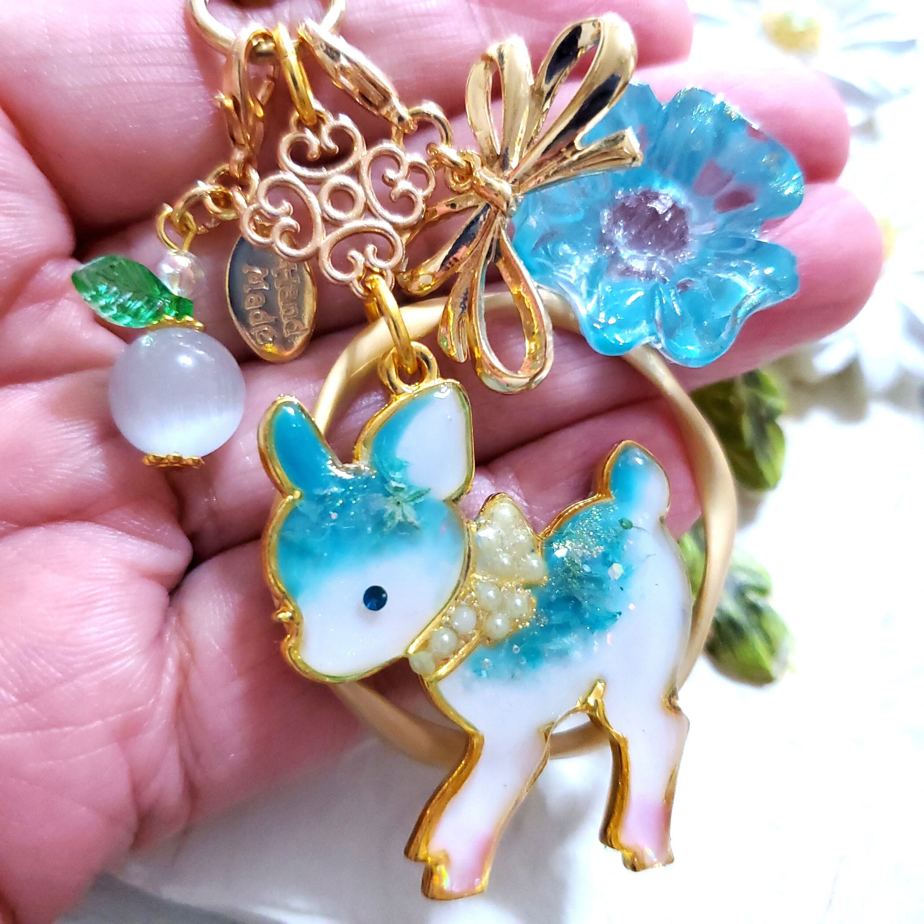 sold out ✦ お散歩子鹿ちゃん ✦ ブルーフラワー ✦ キーホルダー
