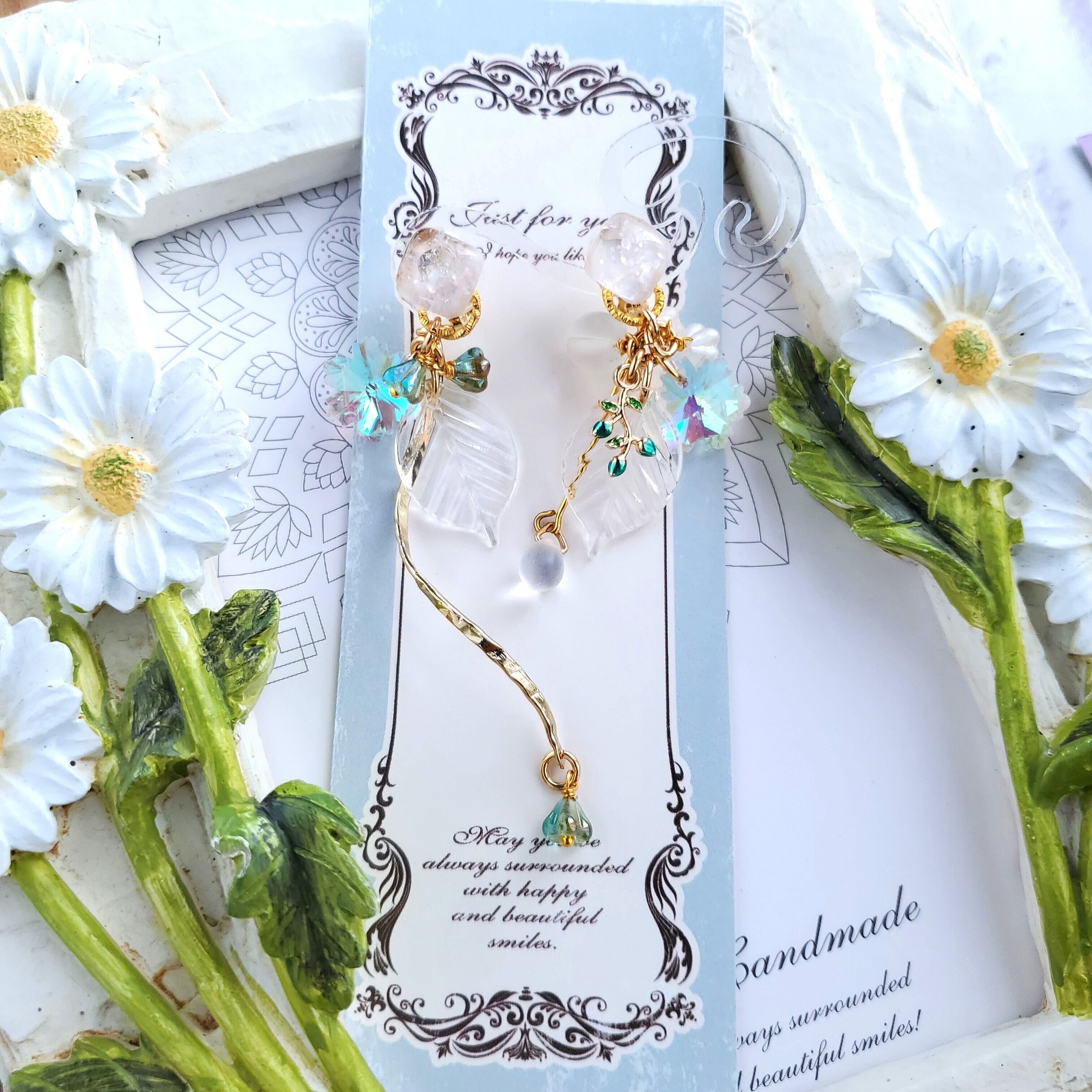 チェコビーズのお花や雫がゆらゆら揺れる可愛い