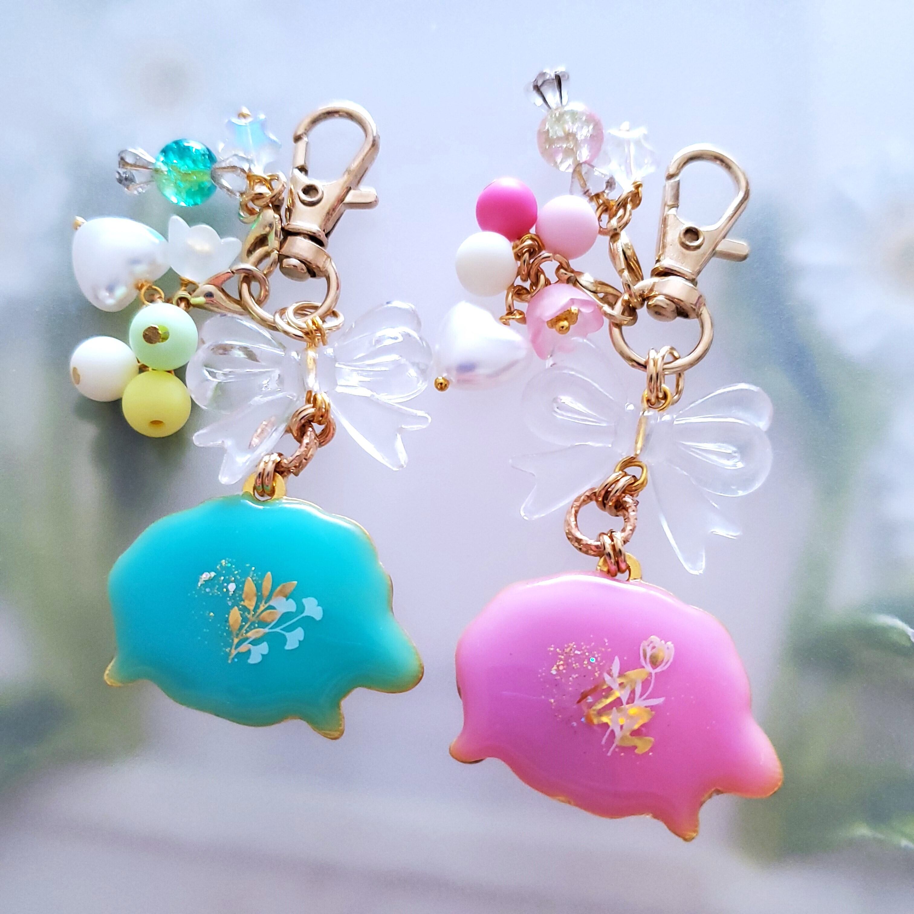 チャームも砂糖菓子のようなビーズで飾りました。