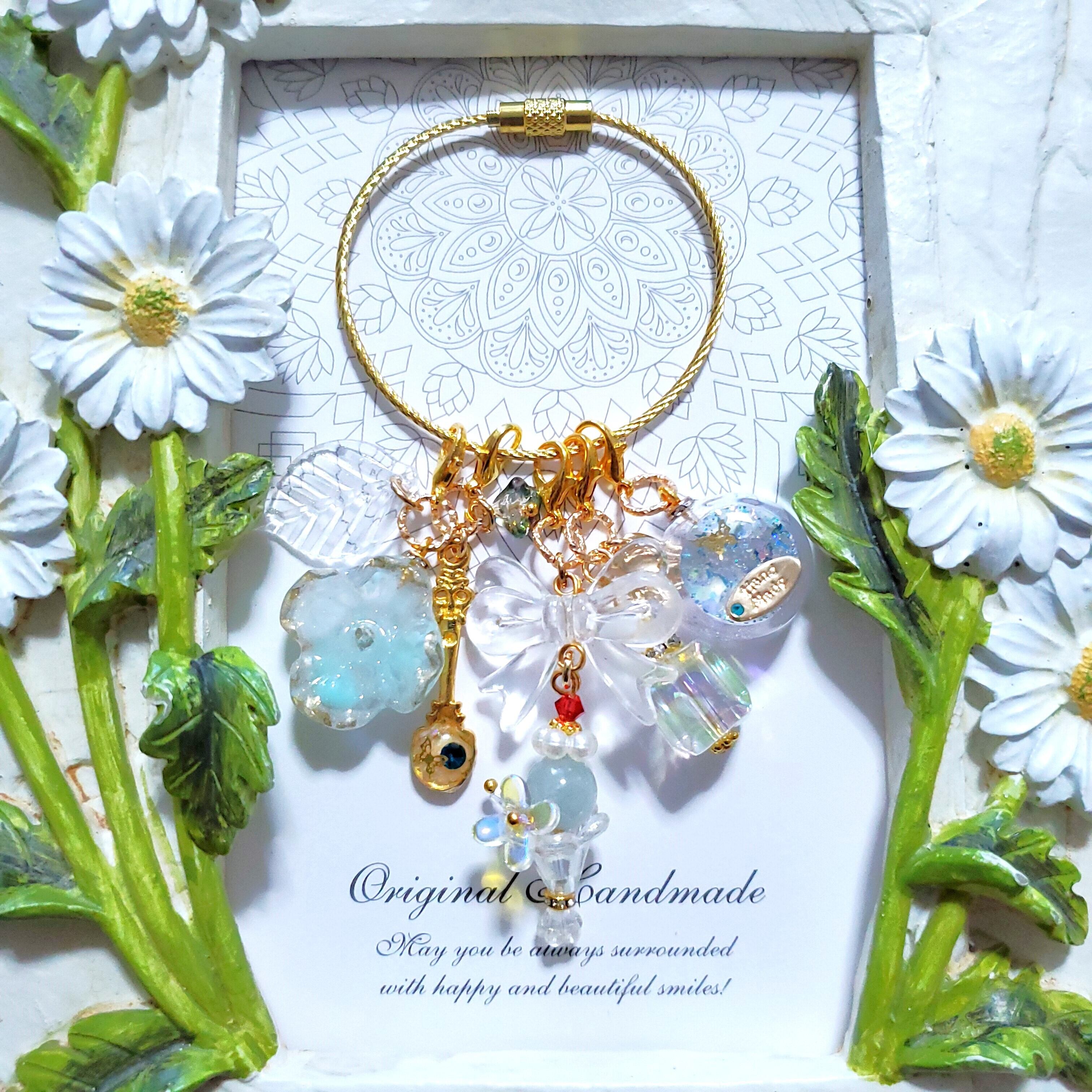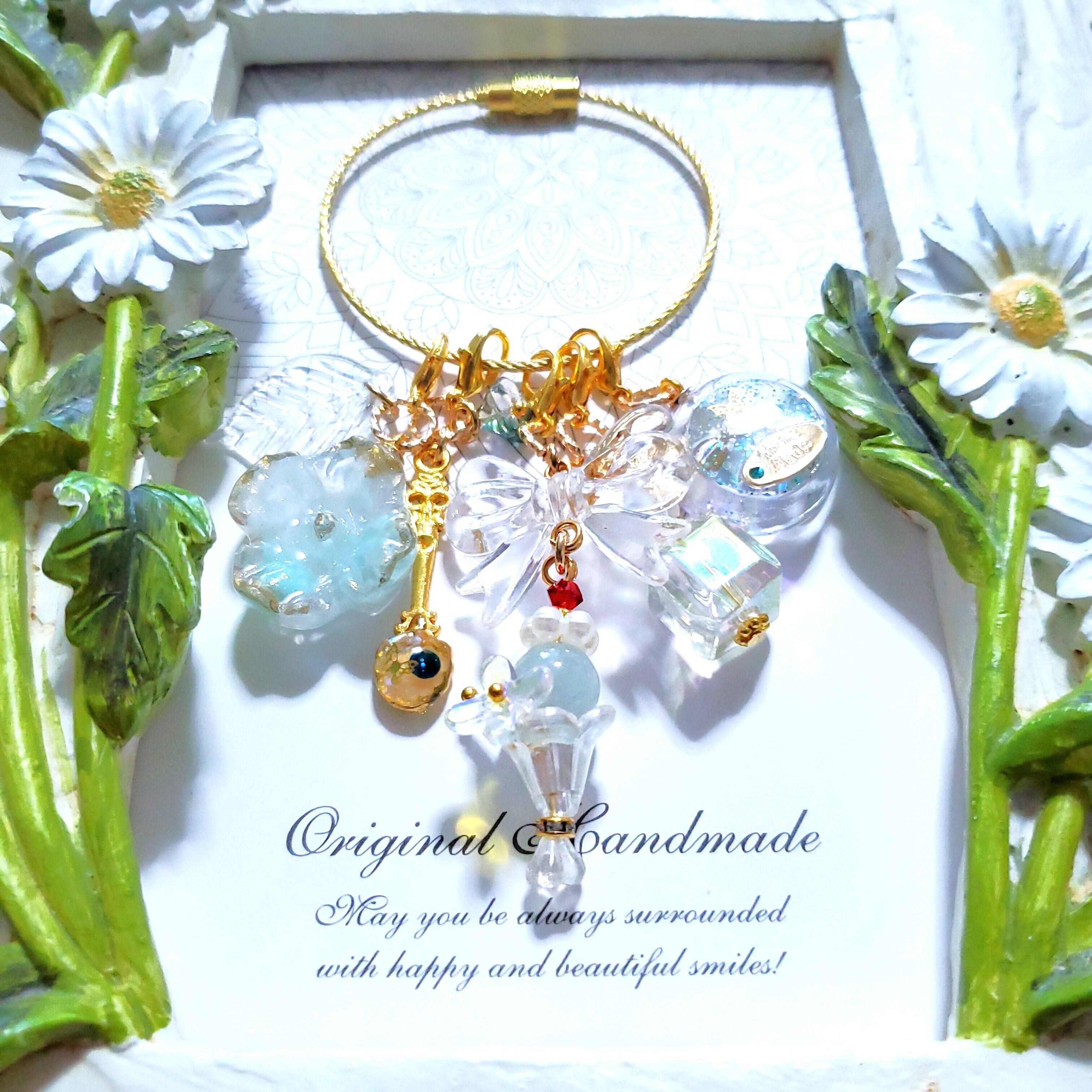 アレンジが楽しめるよう、すべてのチャームにカニカンをつけました。
