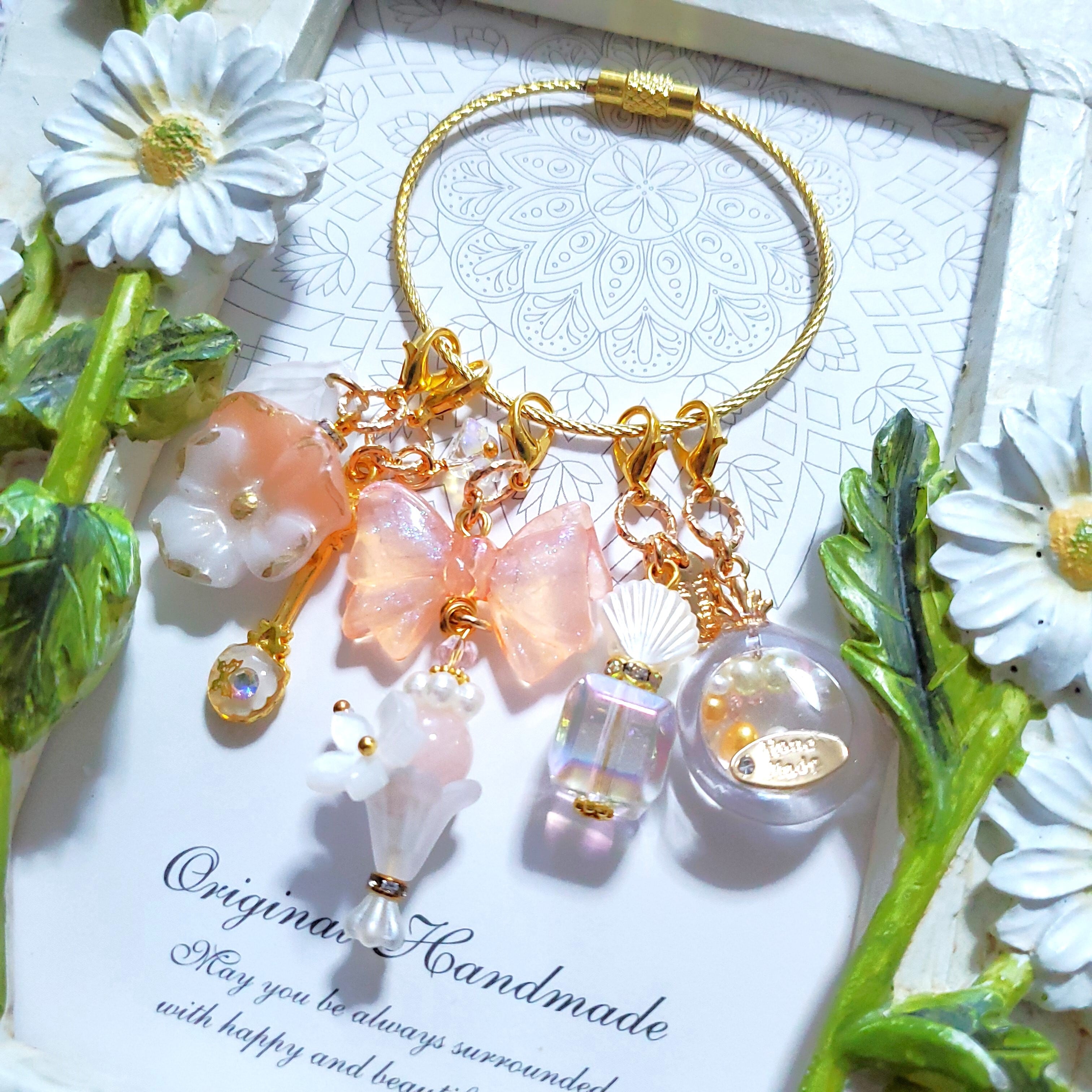 アレンジが楽しめるよう、すべてのチャームにカニカンをつけました。