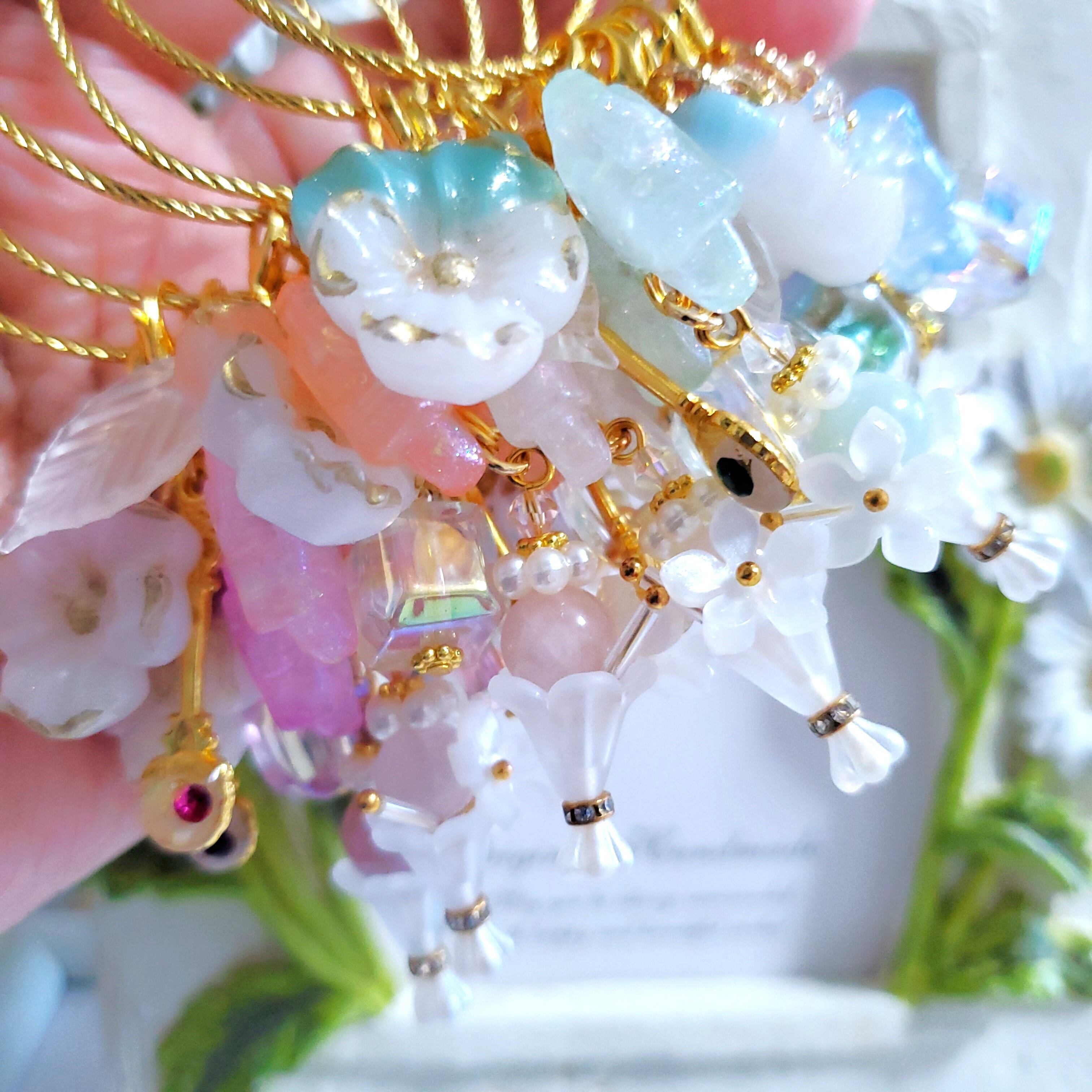 優しいパステルとカラーにこだわったビーズや素材で仕上げました。