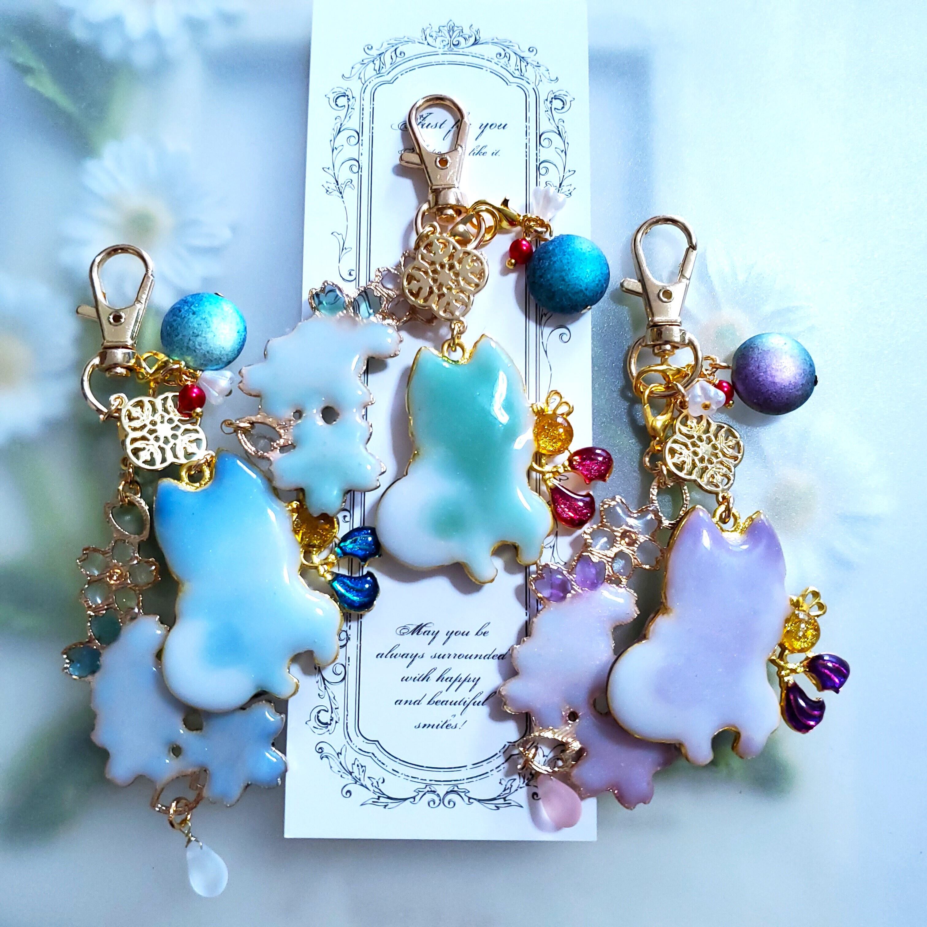 sold out ✦ くるりんしっぽの招き狛犬 ✦ 桜紫 ✦ バッグチャーム