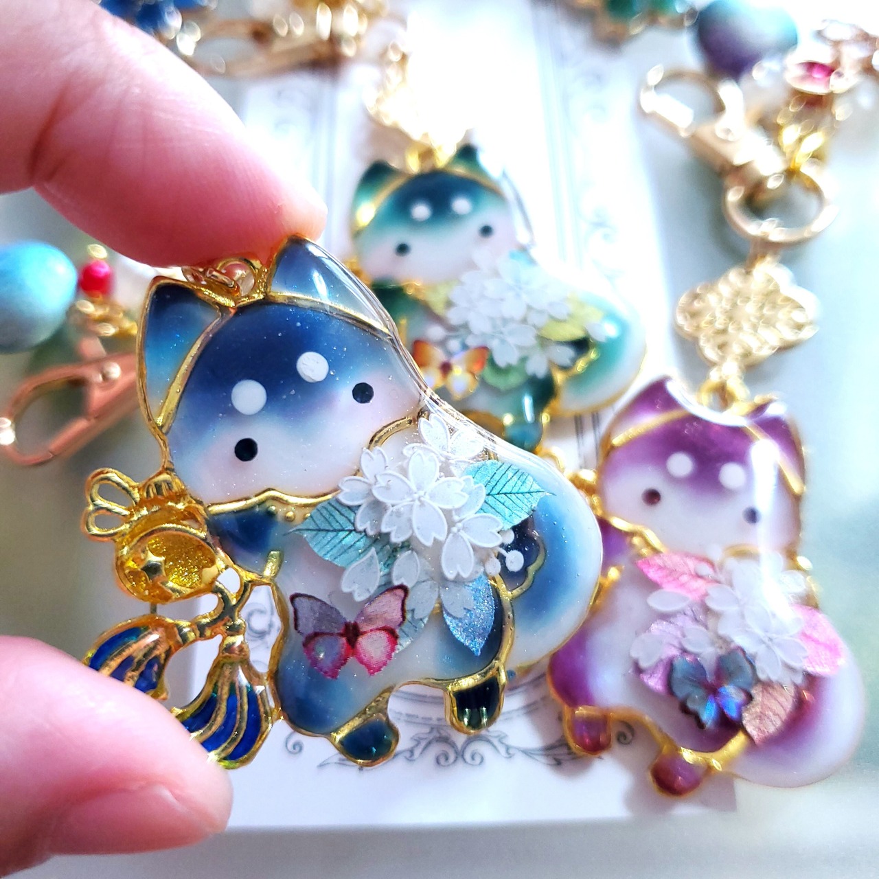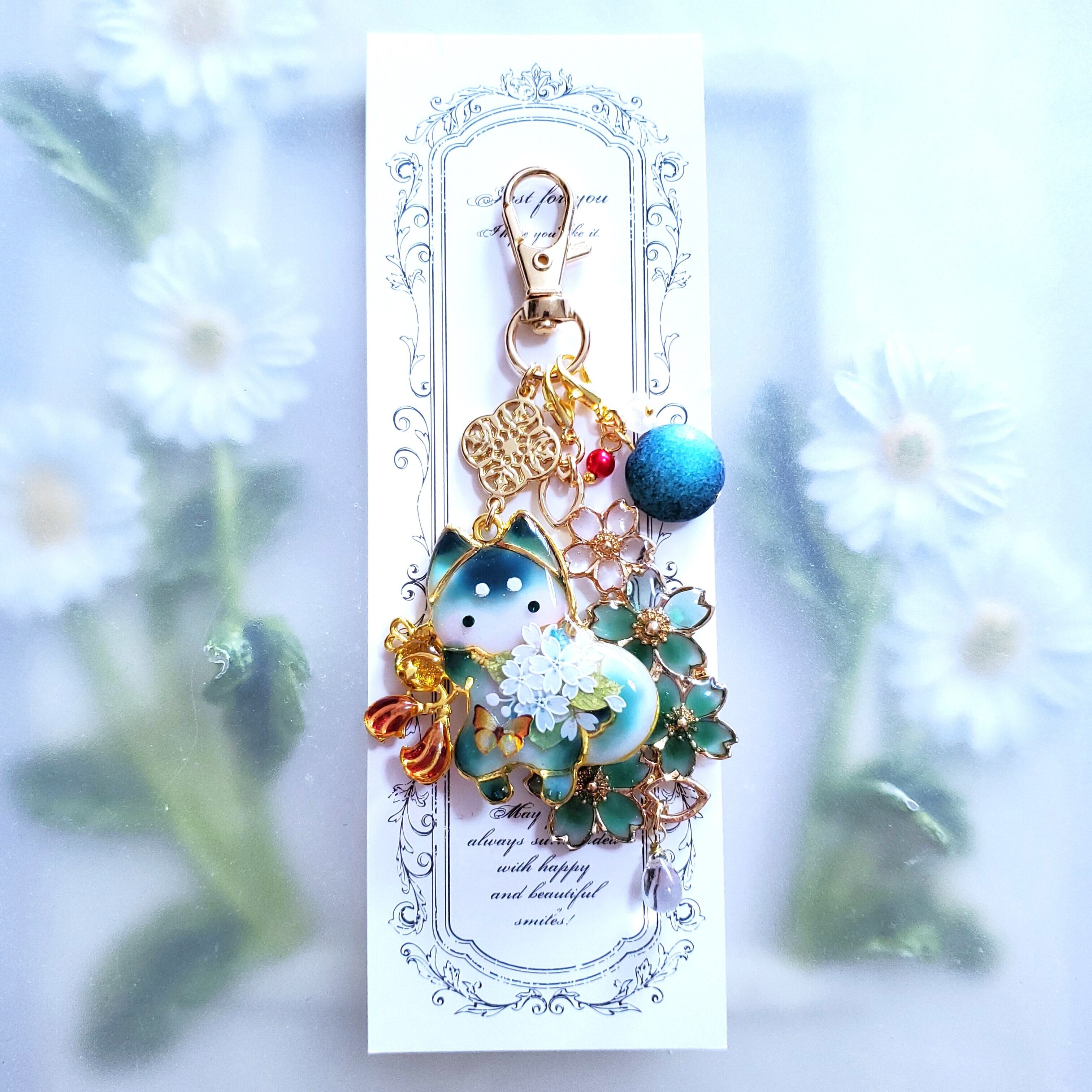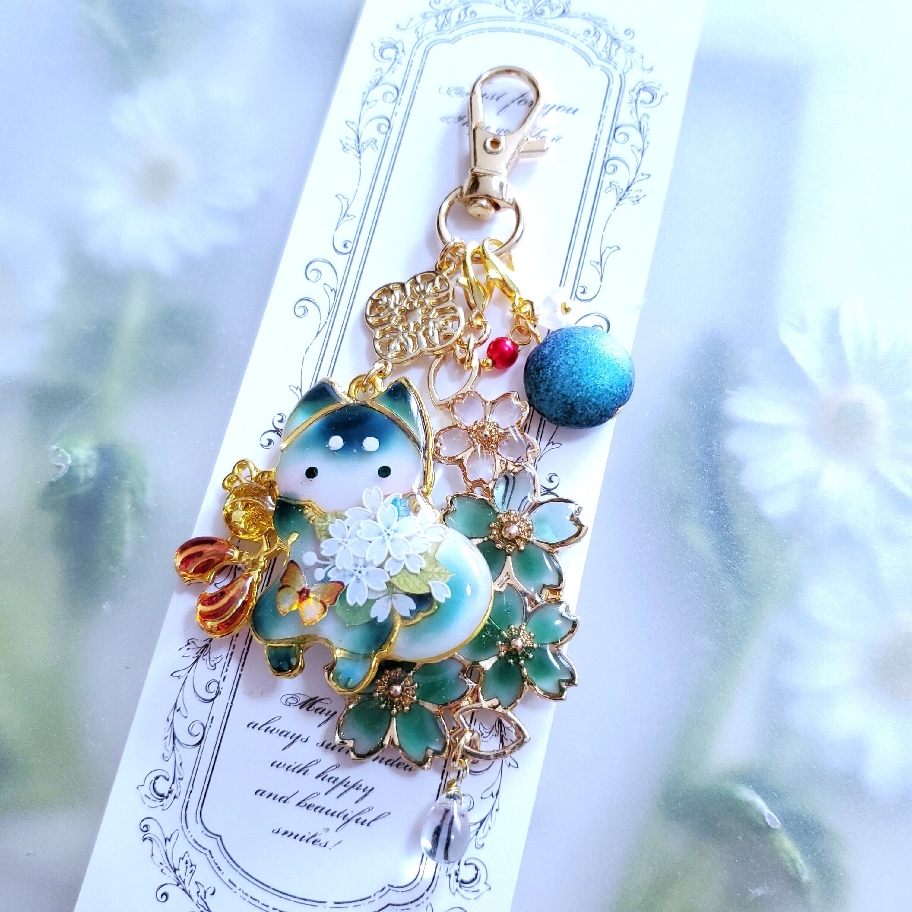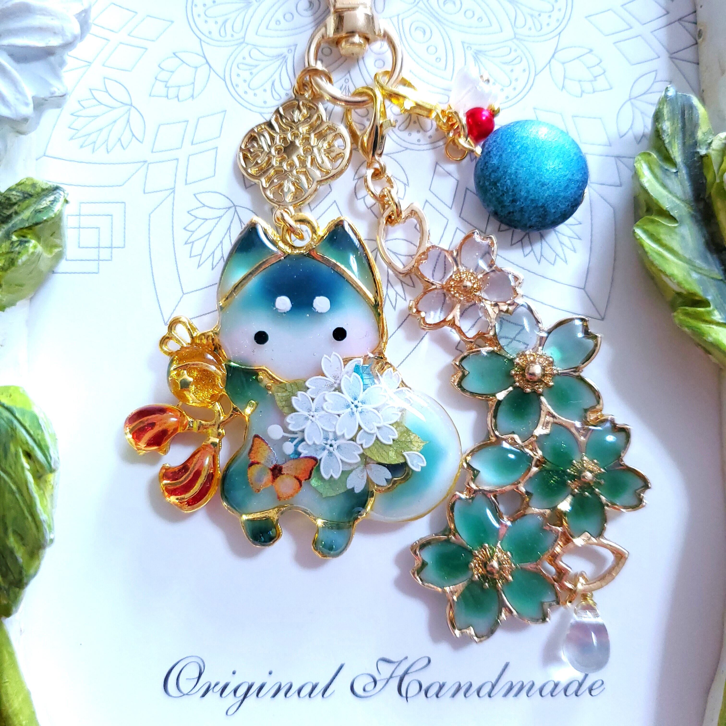 sold out ✦ くるりんしっぽの招き狛犬 ✦ 桜緑 ✦ バッグチャーム