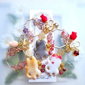 招き猫見習いちゃんを 桜模様のチャームで飾りました