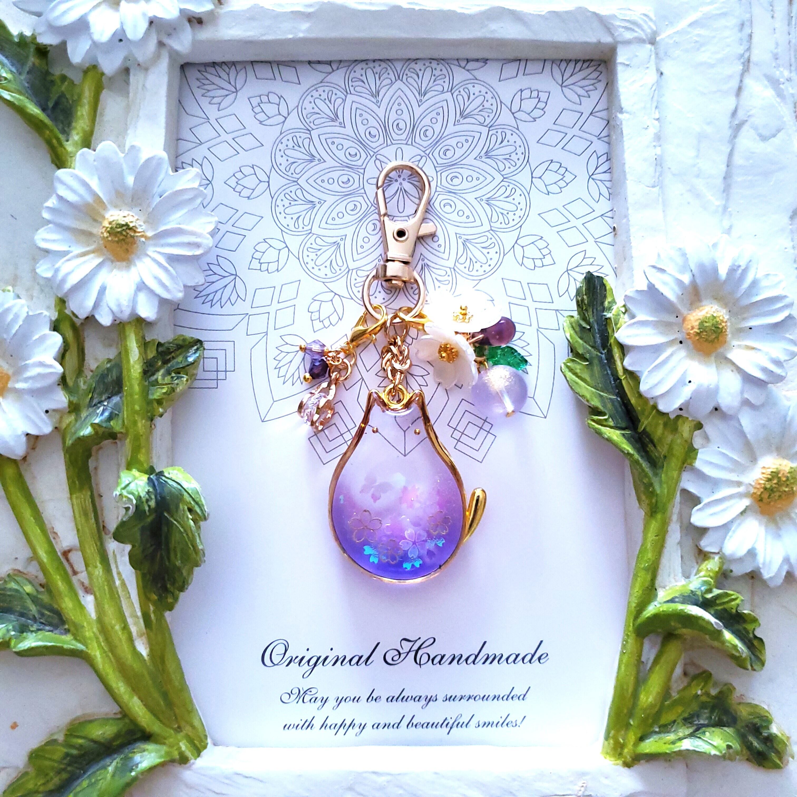 桜にゃんこ ✦ 水桜(紫) ✦ キーホルダー