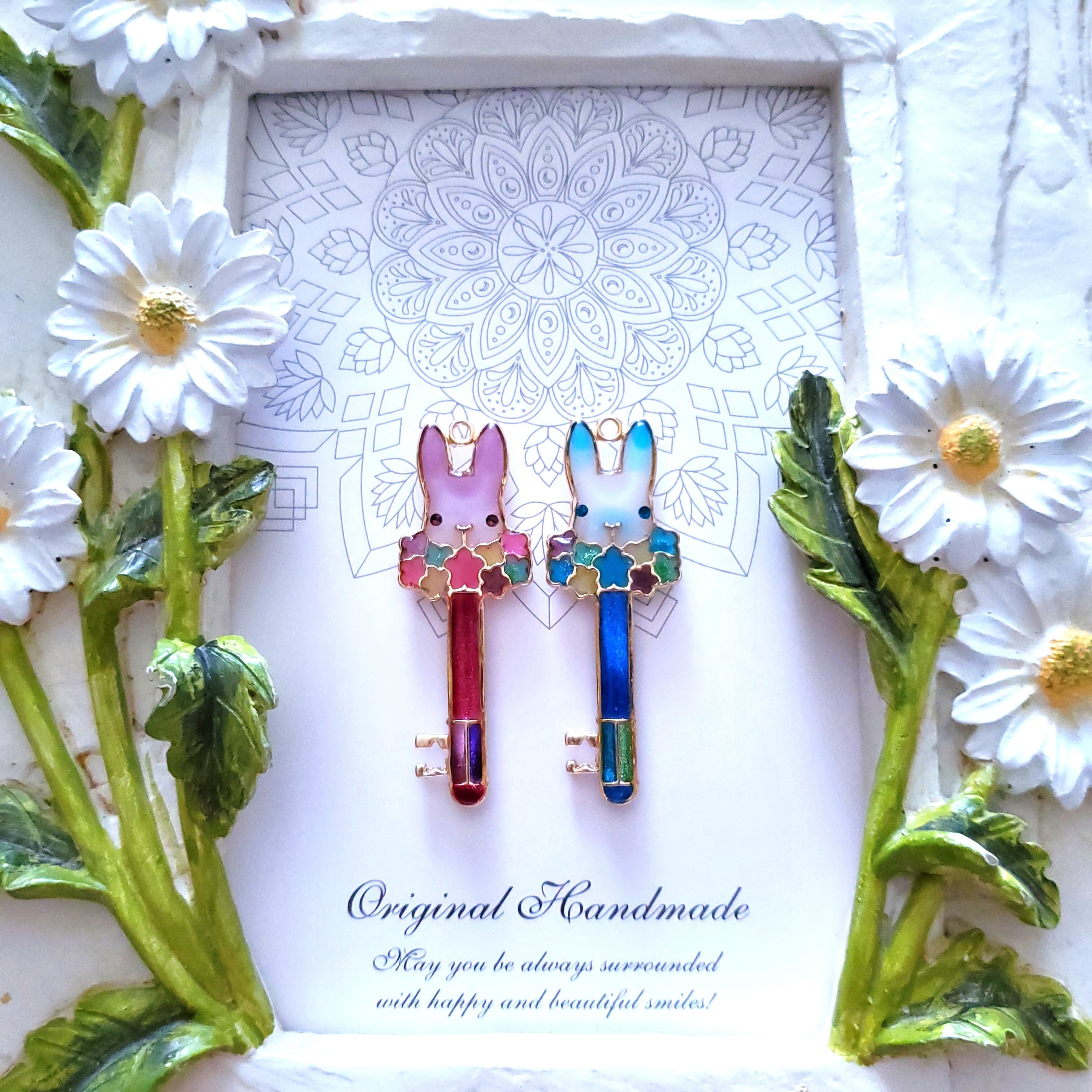 ちいさなうさぎの鍵 ✦ ピンク&ブルー ✦ キーホルダー