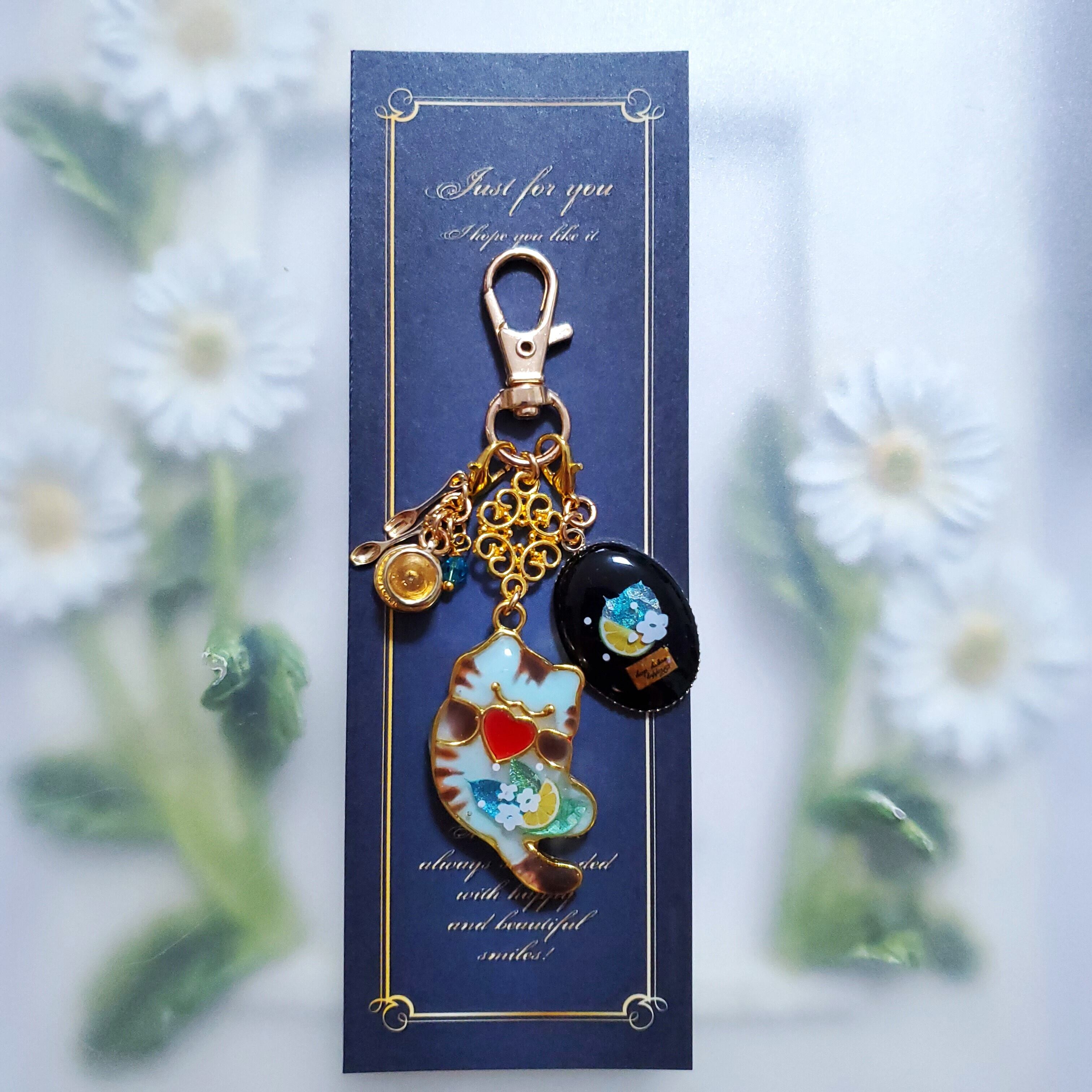 ハートにゃんこ ✦ チョコミント ✦ キーホルダー